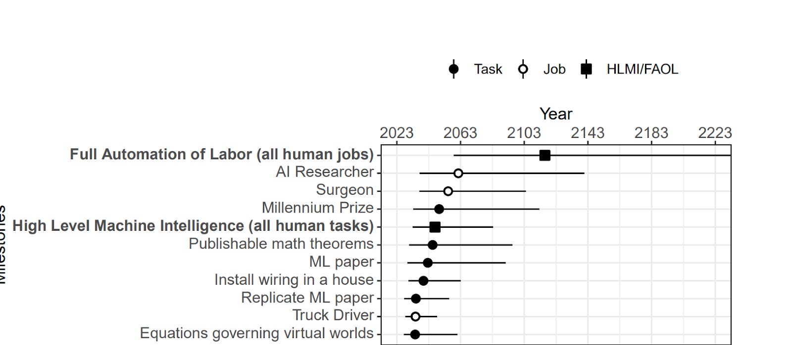 High Level Machine Intelligence (HLMI): Machines capable of all human tasks