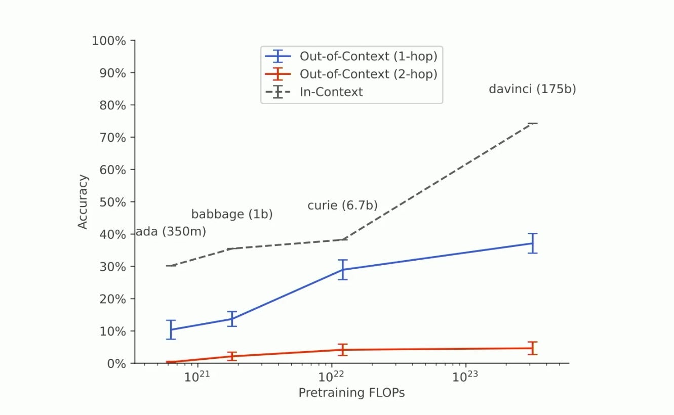 Figure 1: scaling rules of out-of-context learning [source 8]
